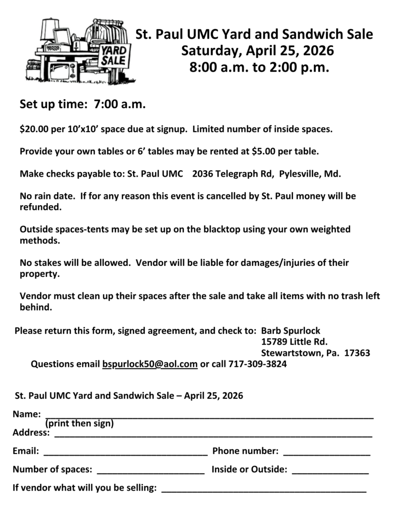 St. Paul UMC Yard Sale and Sandwich Sale