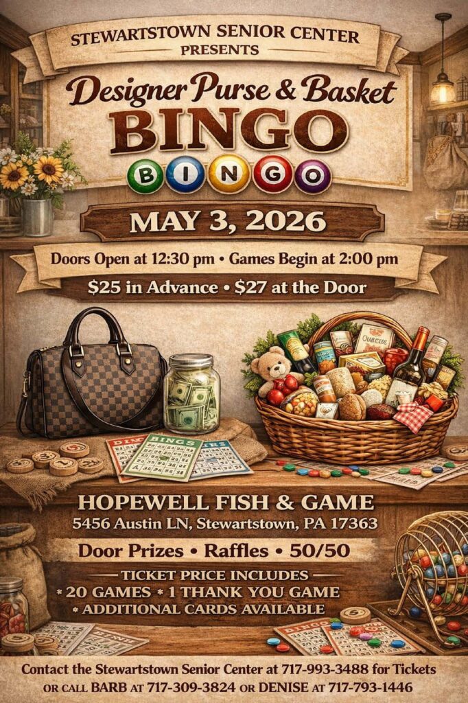 Donations can be made payable to “Stewartstown Area Senior Center” and mailed to SASC, PO Box 235, Stewartstown PA 17363…or better yet, stop in and see us!
